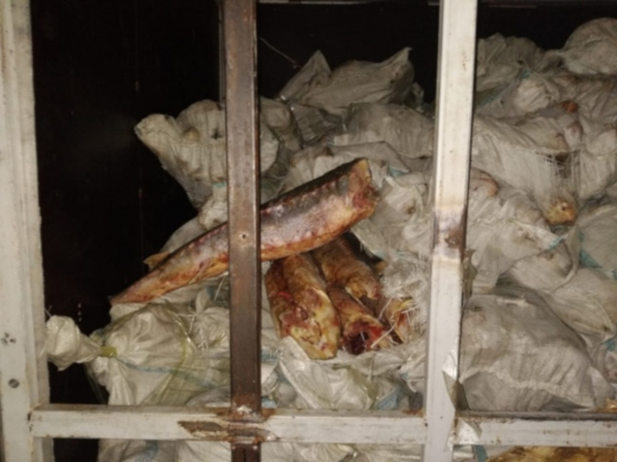 В ходе проверки грузового транспортного средства обнаружили тайник. В нем было примерно тонны замороженной рыбы.